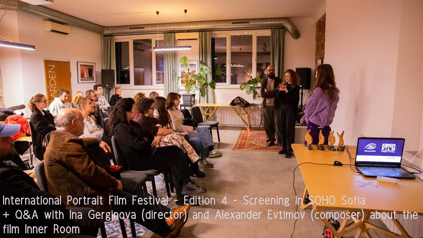 The multi-layered feeling of watching until you fall in love was the promise that IPFF offered between November 9th and 19th, within its edition 4. Screenings and events were held in the cities of Sofia, Plovdiv, Veliko Tarnovo and Varna, the Official Selection of 29 short portraits was presented - works from 17 countries were selected in the categories Film portrait, Collective portrait, Alternative portrait, Self-portrait, as well as a category with a focus on expressive language – screendance or dance film - Portrait in motion.