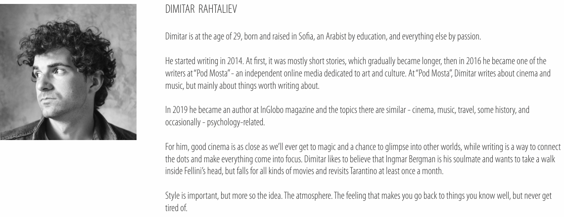 The multi-layered feeling of watching until you fall in love was the promise that IPFF offered between November 9th and 19th, within its edition 4. Screenings and events were held in the cities of Sofia, Plovdiv, Veliko Tarnovo and Varna, the Official Selection of 29 short portraits was presented - works from 17 countries were selected in the categories Film portrait, Collective portrait, Alternative portrait, Self-portrait, as well as a category with a focus on expressive language – screendance or dance film - Portrait in motion.