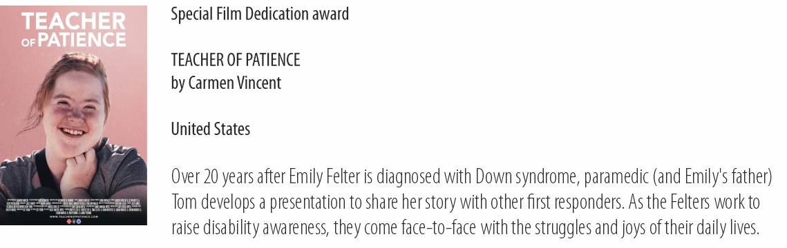 A special emphasis was placed on the 2022 Film-Dedication - Teacher of Patience, directed by Carmen Vincent and inviting us into the world of Emily Felter and her family. Emily lives with Down Syndrome, but also with her favorite songs, things to eat, places in town, loved ones, friends and cats. The mission and aspiration of Emily, her family and young director Carmen Vincent's film is to raise awareness about people with disabilities. An important and emotional collective portrait that opened the third edition of the festival.