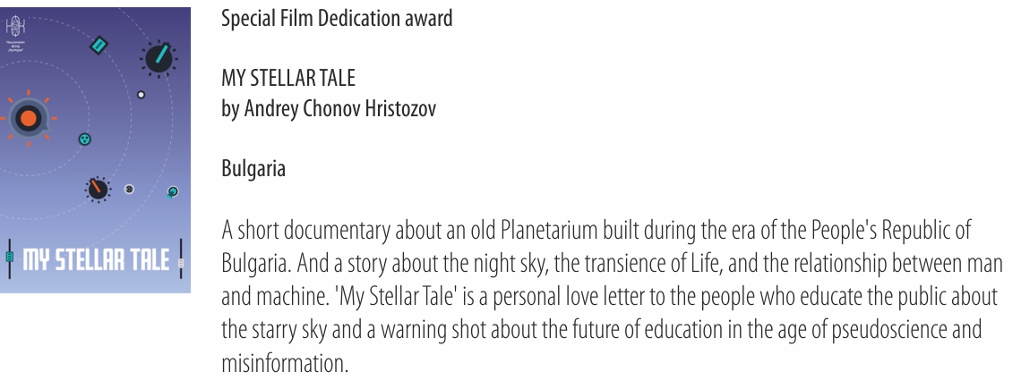 Special emphasis was placed on the 2021 Film Dedication – My Stellar Tale, a film by Bulgarian filmmaker Andrey Hristozov dedicated to the Smolyan Planetarium and the people working there, their mission and love for the sky and the stars.