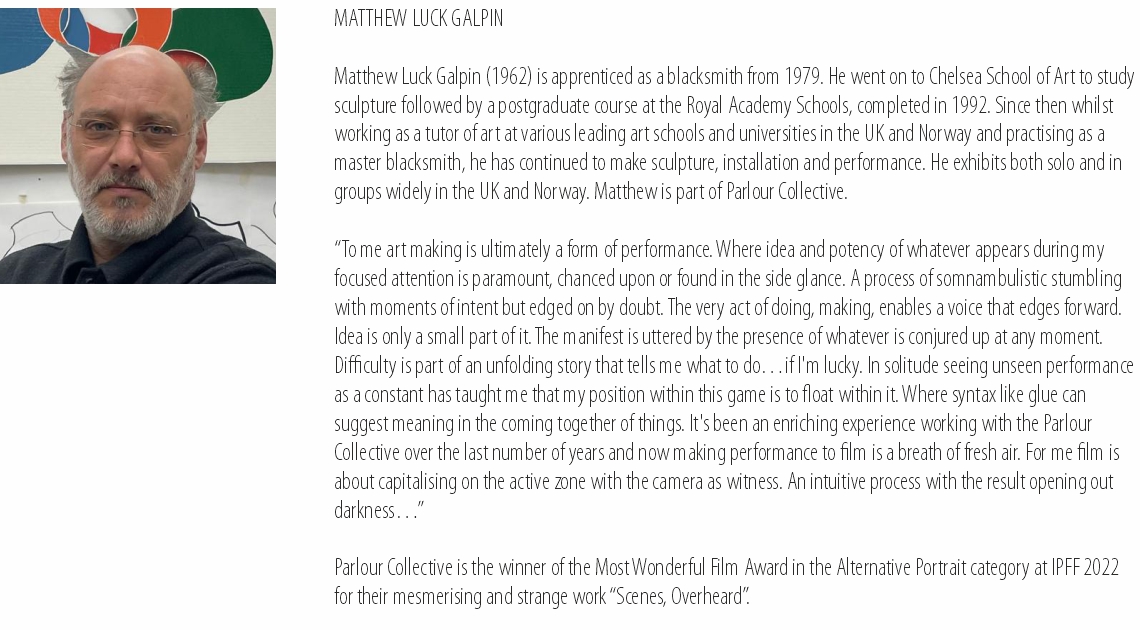 Beyond the thematic blocks of short films, curated according to the context of the unique space housing each screening, IPFF has reaffirmed its ambition to be a platform for real interaction between audiences and artists. And in 2023, the festival offered collaborations through a series of accompanying events. Each film screening was followed by discussions devoted to the portrait and portraiture as phenomena, processes and studies of the human world. Intriguing workshops were offered to the audience by the members of the international festival jury Jack Catling, Matthew Luck Galpin, David Stearn and Ellénore Lemattre, intertwining the philosophy of portraiture with topics like the potential of the audio-visual environments within which we move, and the fundamental value systems of humans and societies.